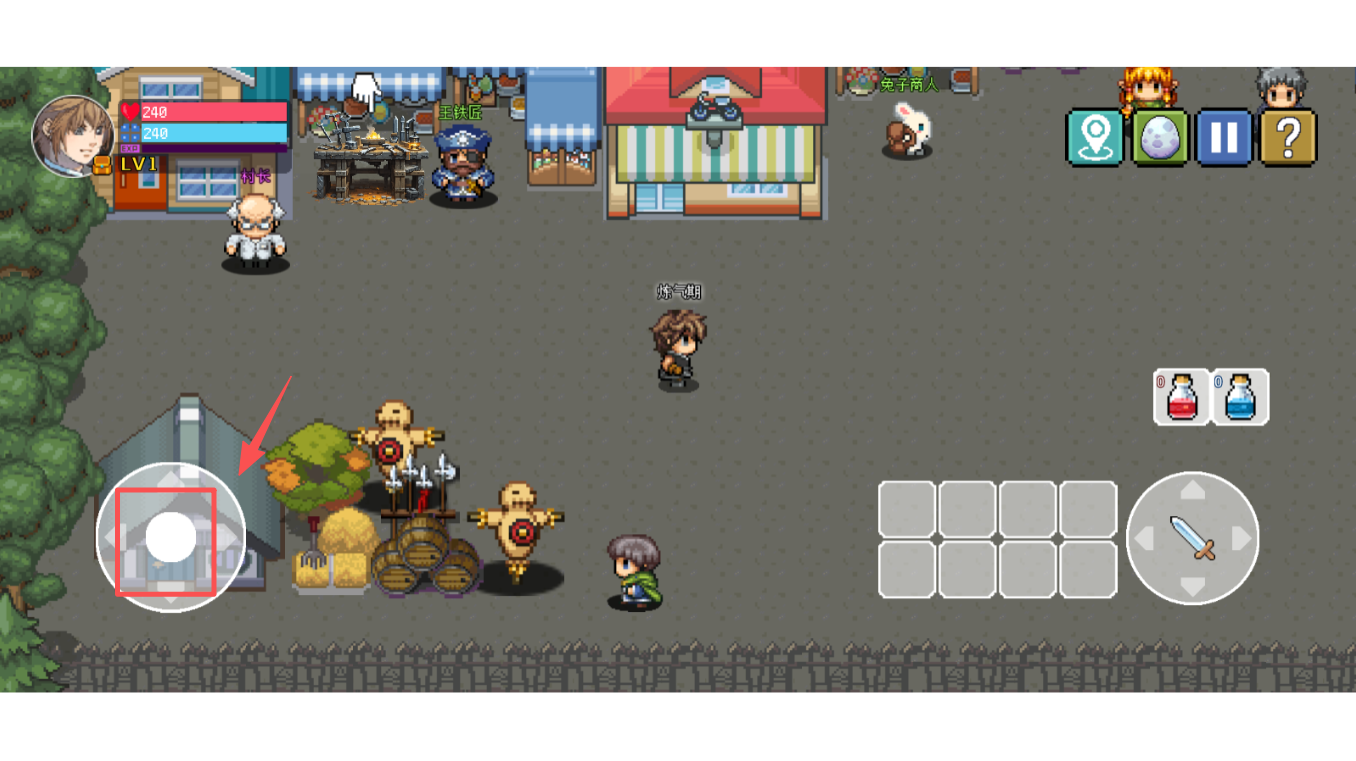 3、然后,使用虚拟摇杆控制角色移动,探索游戏世界,与NPC互动。