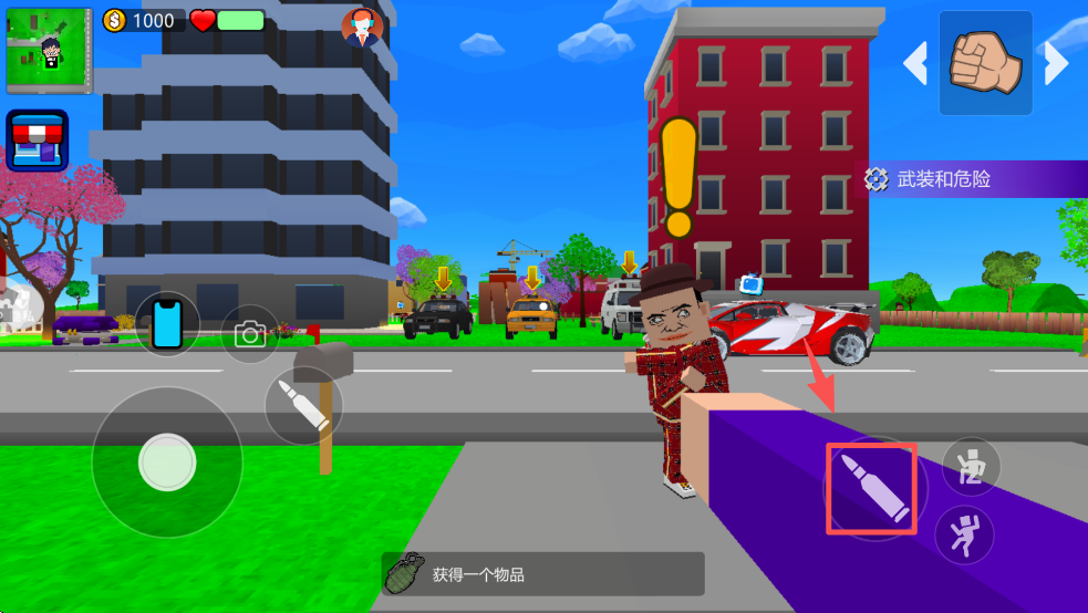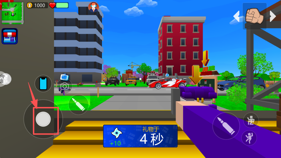 2、使用左下角的摇杆控制角色移动,探索城市,寻找任务目标。