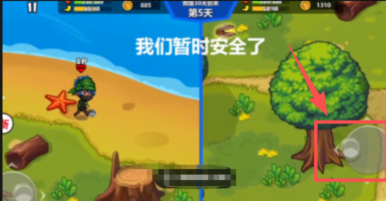 3、在游戏中点击树木获取资源,点击屏幕中的树木图标,开始收集木材。