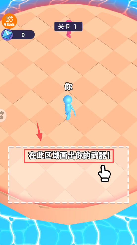 3、在游戏区域,用手指画出你的武器,准备战斗。