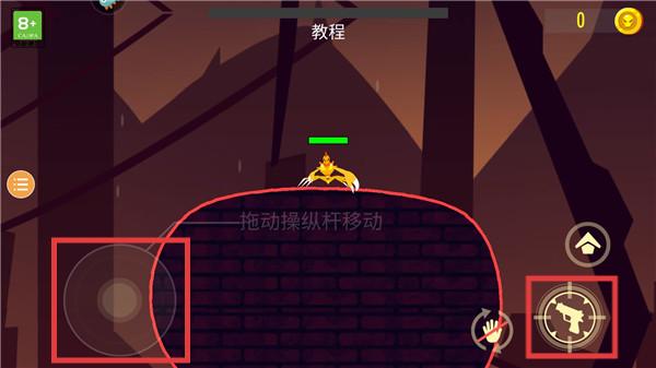 3、拖动操纵杆移动蜘蛛,点击右下角按键进行射击。