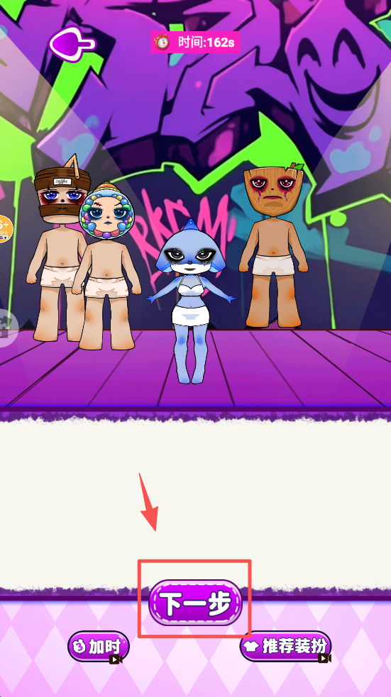 3、选择好服装和配饰后,点击“下一步”按钮,继续进行更多的装扮搭配选择。