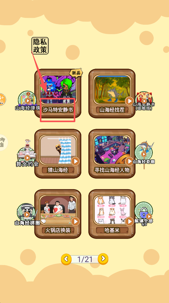 1、在游戏主界面,点击“沙马特安静书”图标,进入游戏模式选择,开始你的装扮之旅。