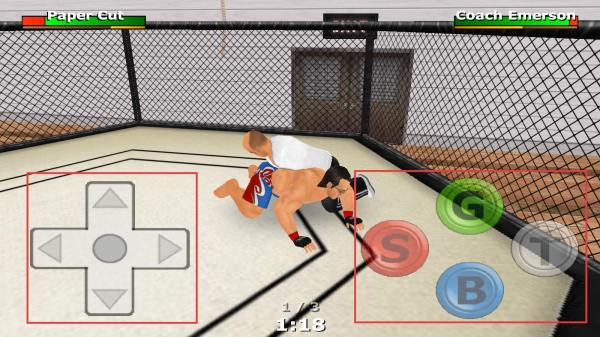 3、在比赛过程中,左下角十字键控制角色移动,右下角按键控制角色打击、脱离等。