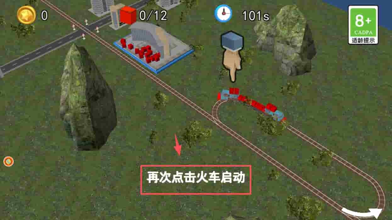 4、再次点击启动按钮继续游戏。在安全后,点击启动,让火车继续前进。