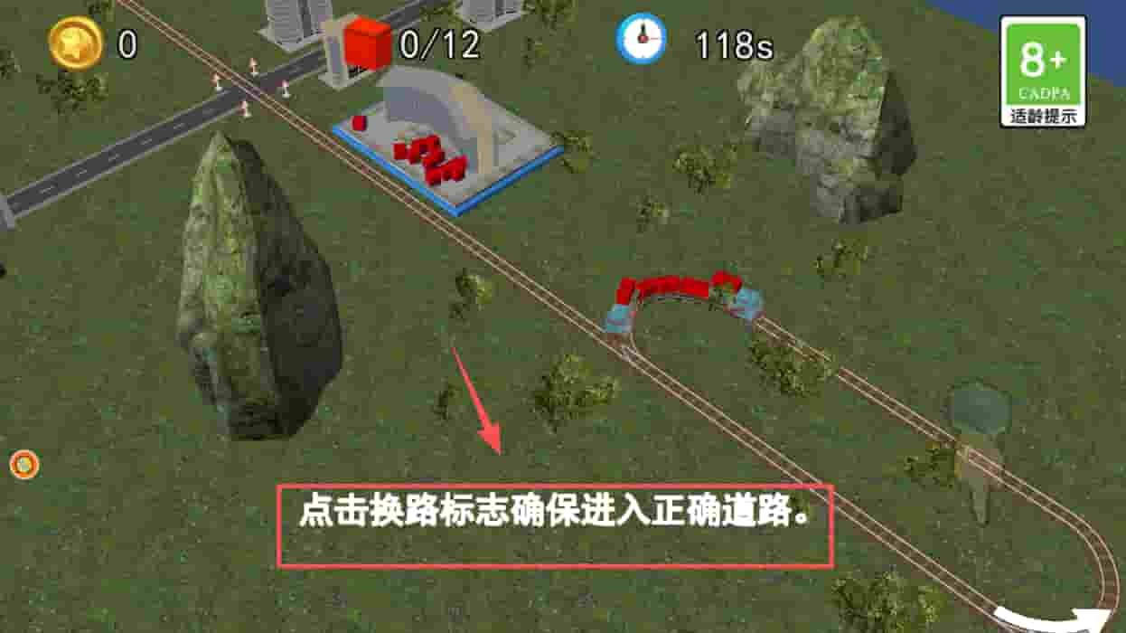 3、点击换路标志改变路线。确保火车进入正确道路,继续行程。