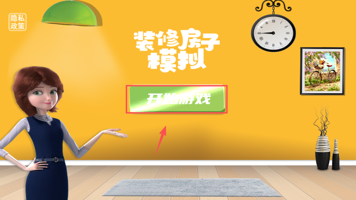1、点击“开始游戏”按钮,进入游戏,开始你的装修之旅。