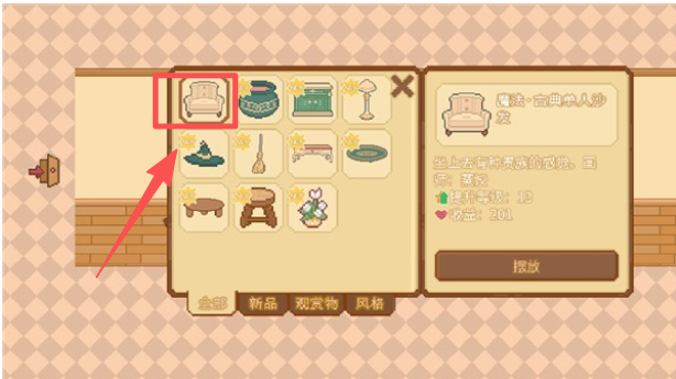 3、点击物品进行建造或装饰。从物品栏中选择家具进行室内装饰。