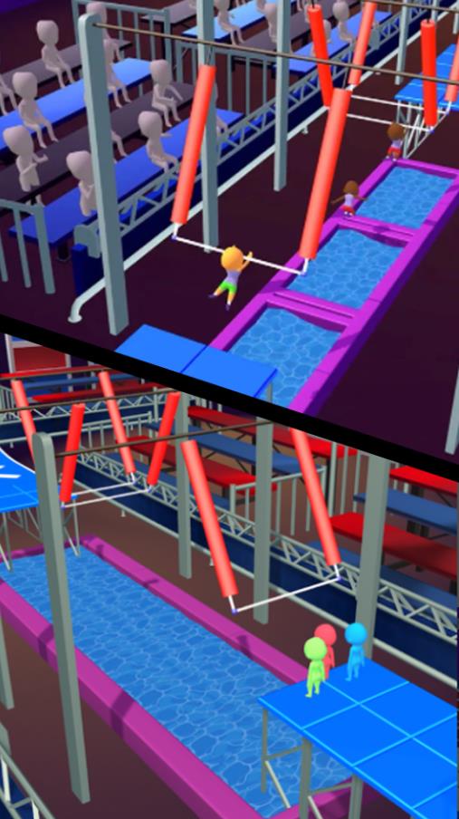 1.《滑绳索大赛》是一款绳索跑酷游戏;