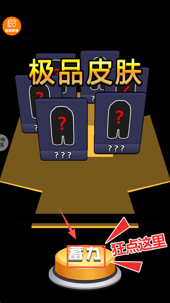 1、点击“蓄力”按钮开始游戏。这是游戏的启动步骤,让你开始挑战并获得极品皮肤的机会。