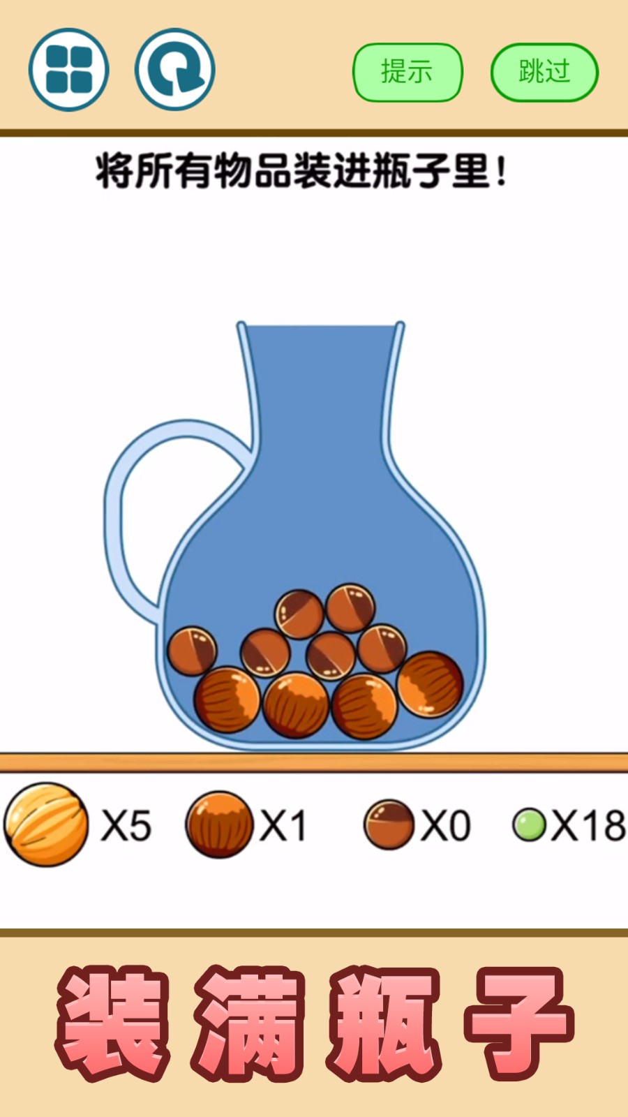 2、开始后,玩家需要把坚果装在瓶子里放在桌子上。
