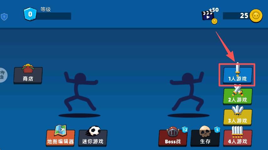2、选择“1人游戏”进入游戏,点击商店图标可以购买更多游戏道具。