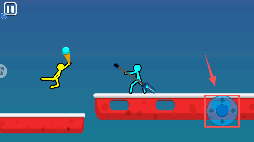 4、使用虚拟摇杆控制角色移动,点击攻击按钮进行战斗,击败对手获得胜利。