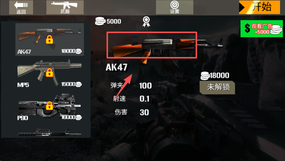 2、在武器选择界面,选择你想要使用的武器,如AK47。