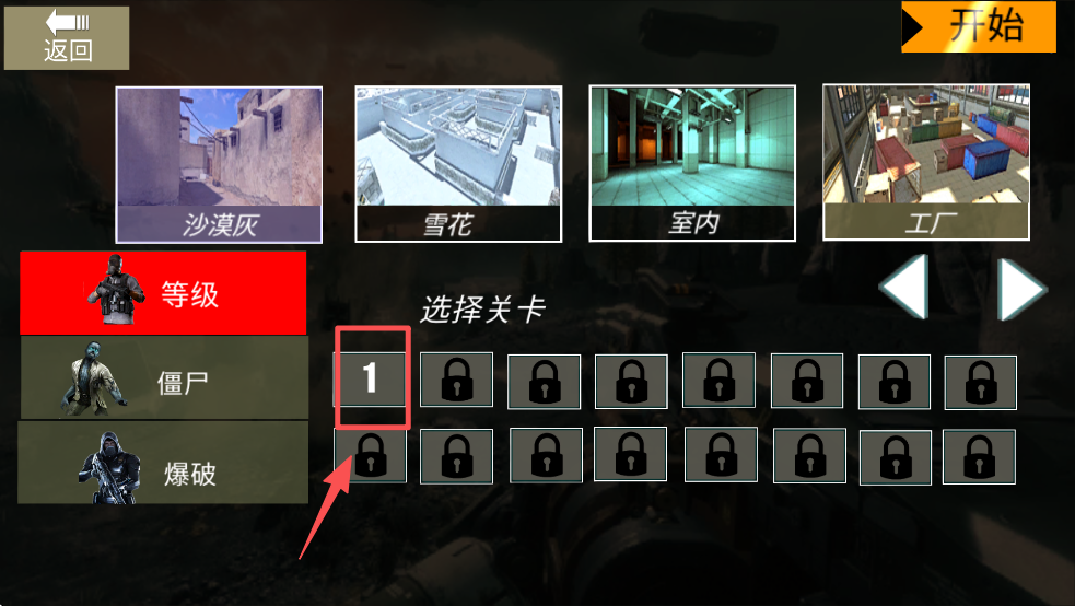 3、选择关卡和难度,点击“开始”进入战斗场景。