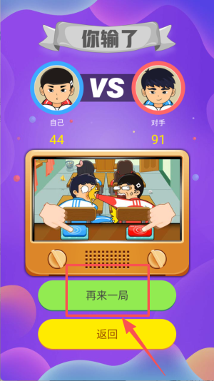 4、一局游戏结束后,若想继续游玩,点击 “再来一局” 按钮即可开启新的对局。