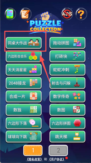 1、打开 Puzzle Collection 游戏,在游戏列表中找到 “同桌大作战” 并点击进入。