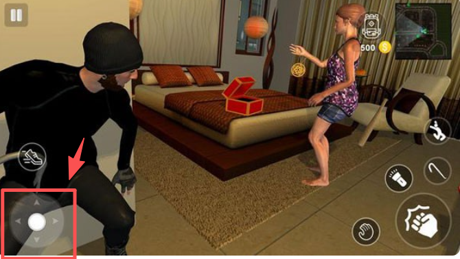 4、使用左下角的虚拟摇杆控制角色移动,开始你的首次盗窃。