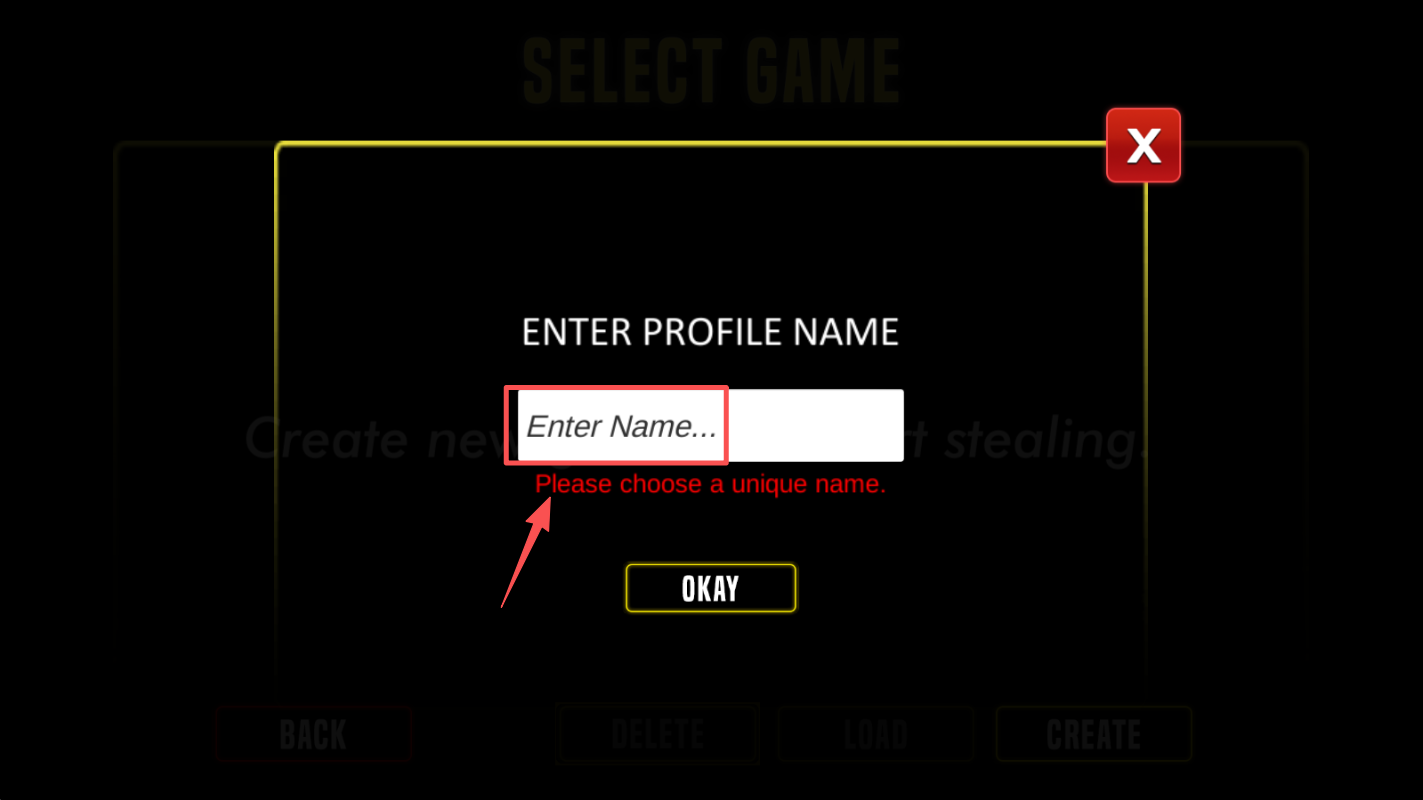 3、输入一个独特的名字作为你的游戏档案名。