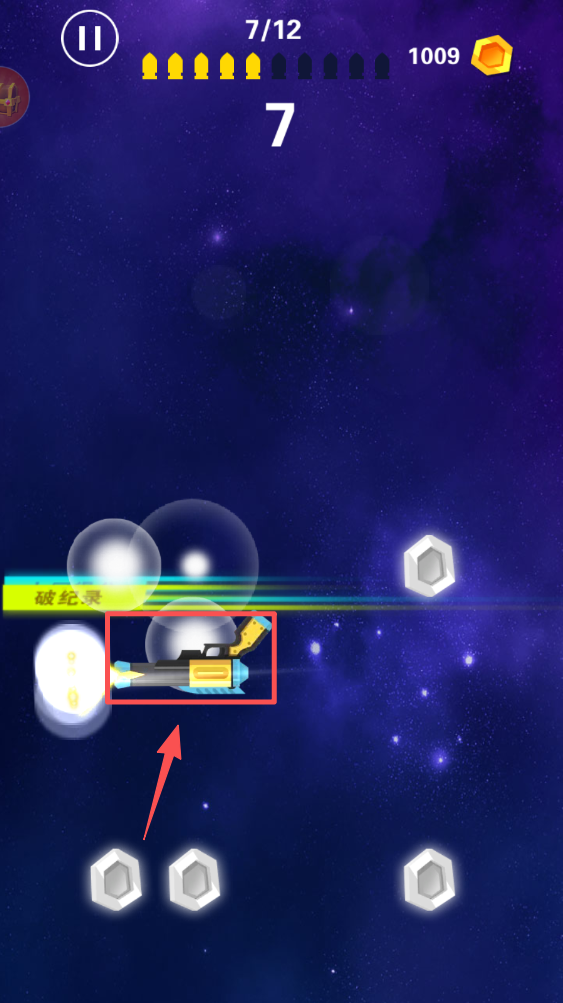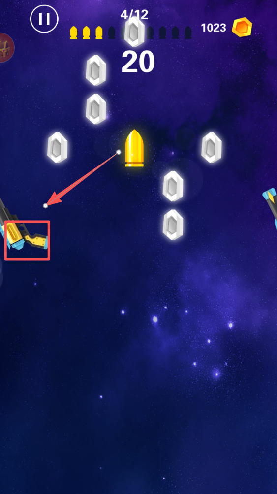 2、在游戏过程中,拖动武器射击并击破目标,注意收集金币和道具。