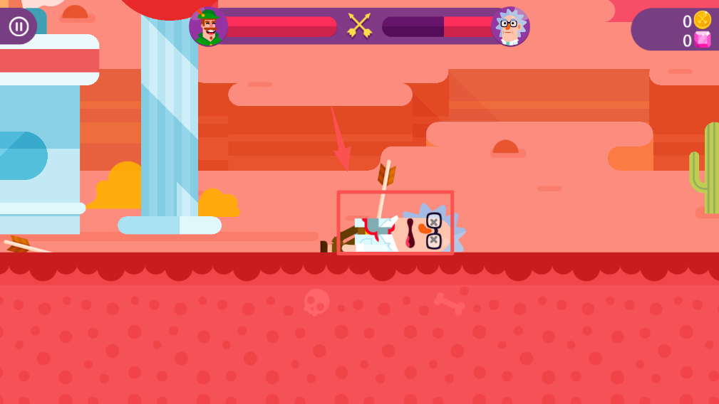 2、在游戏过程中,拖动并调整射击角度和力度,击中目标。