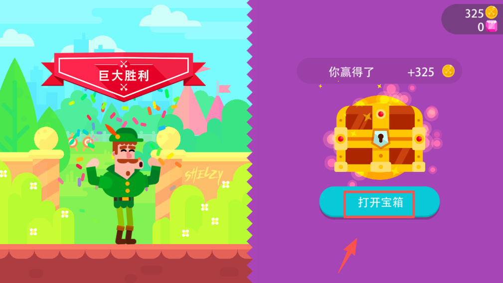 4、胜利后点击“打开宝箱”领取金币奖励,用于游戏内购买。