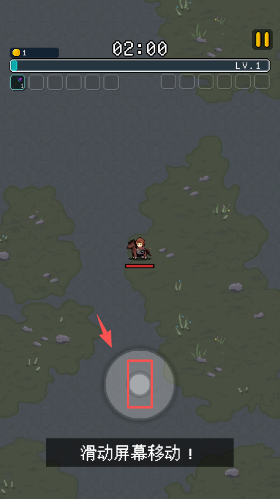 1、在游戏界面,通过滑动屏幕来控制角色移动,避开障碍物。