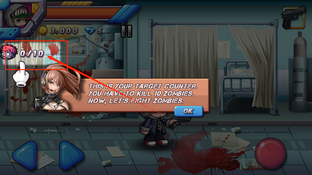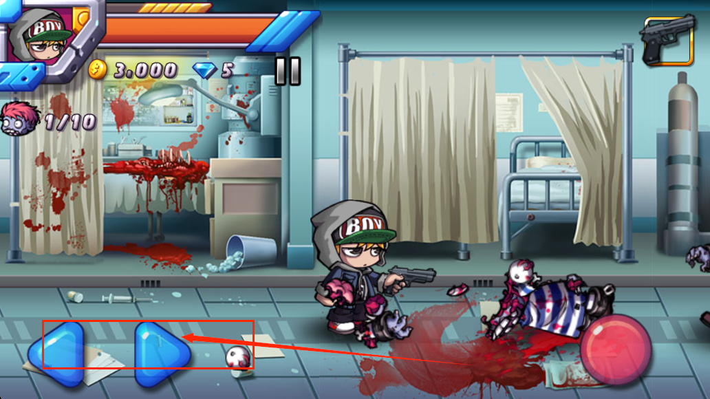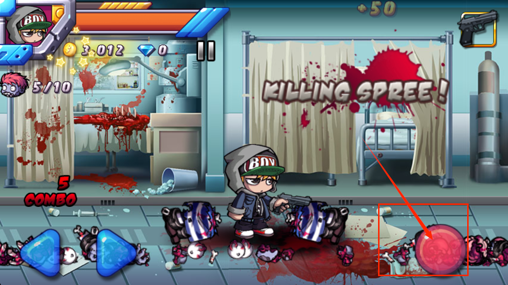 3、右边可以射击,击毙僵尸,击毙是所有僵尸即为通关通关。