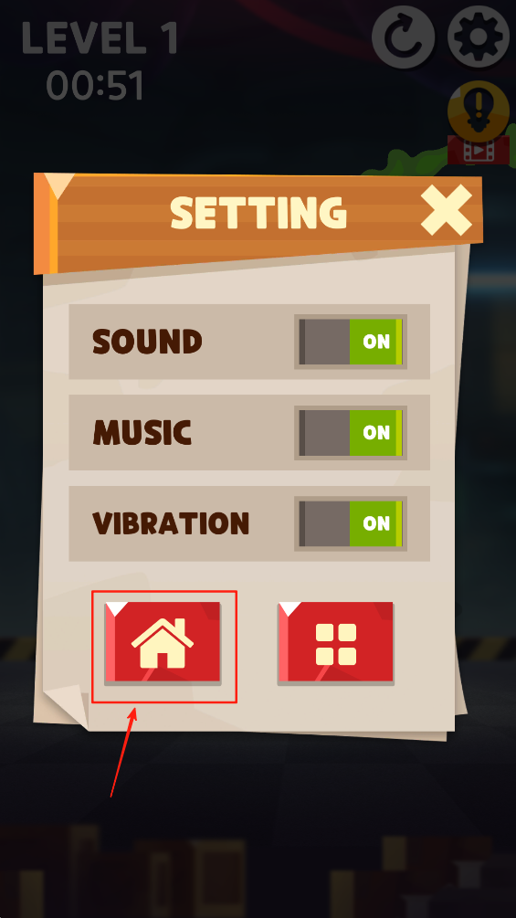 3、在设置界面中,点击“HOME”按钮返回主界面,继续游戏。