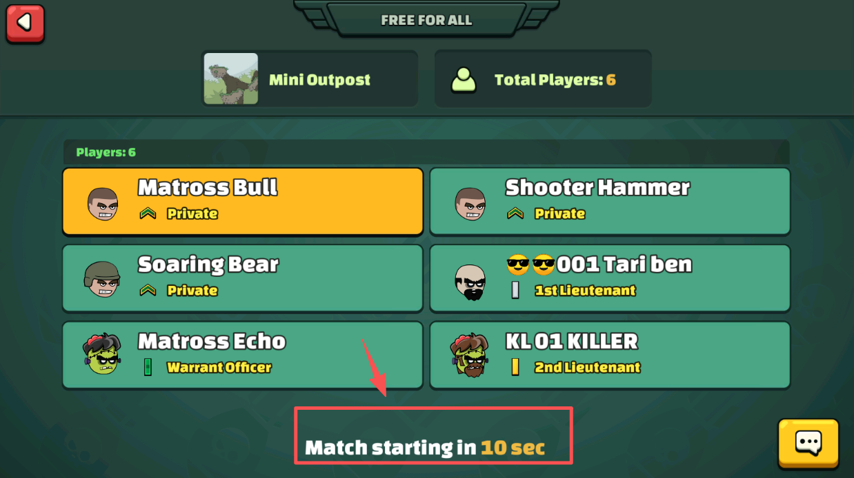 3、准备战斗,在玩家列表中等待匹配完成,准备开始战斗。