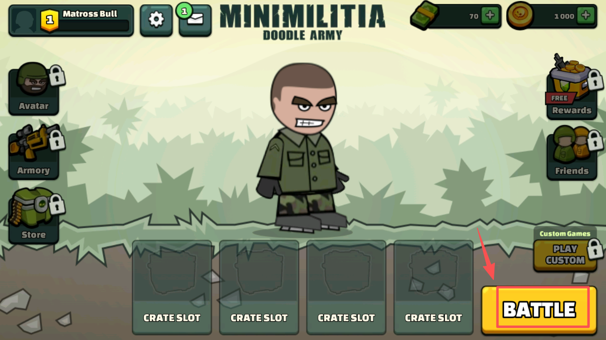 1、进入游戏,点击主界面的“BATTLE”按钮,开始游戏。