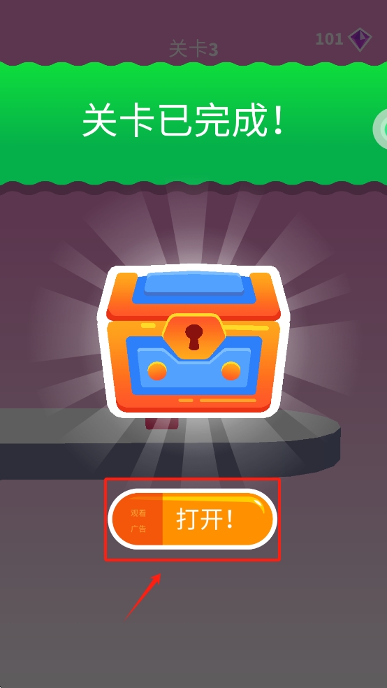 3、点击“打开!”按钮,观看广告以获取额外奖励箱。