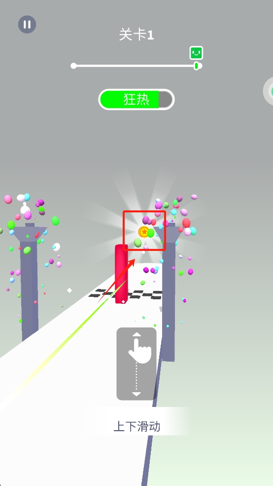 2、在狂热模式下,快速滑动屏幕,让积木穿过泡泡区域。