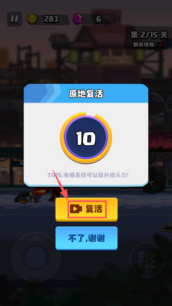 4、如果游戏失败,可以选择“复活”继续挑战。