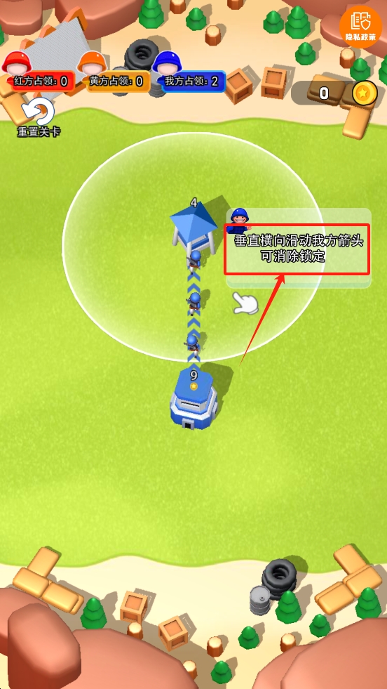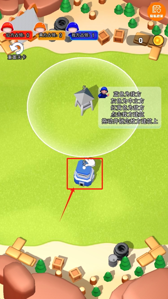 3、拖动我方单位到敌方建筑上,进行占领,增加我方占领点数。