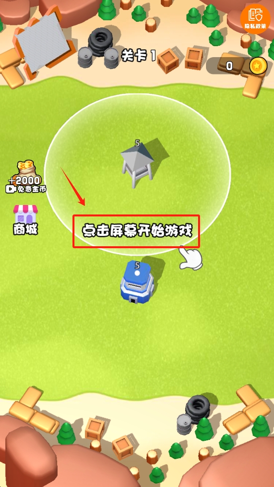 1、点击屏幕上的“点击屏幕开始游戏”按钮,进入游戏关卡。