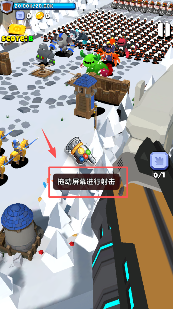 2、接着,拖动屏幕进行射击,消灭敌人,获取分数,体验游戏战斗乐趣。