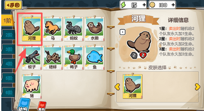 3、然后,在动物选择界面点击你想要的动物,了解其属性和技能,进行阵容搭配。