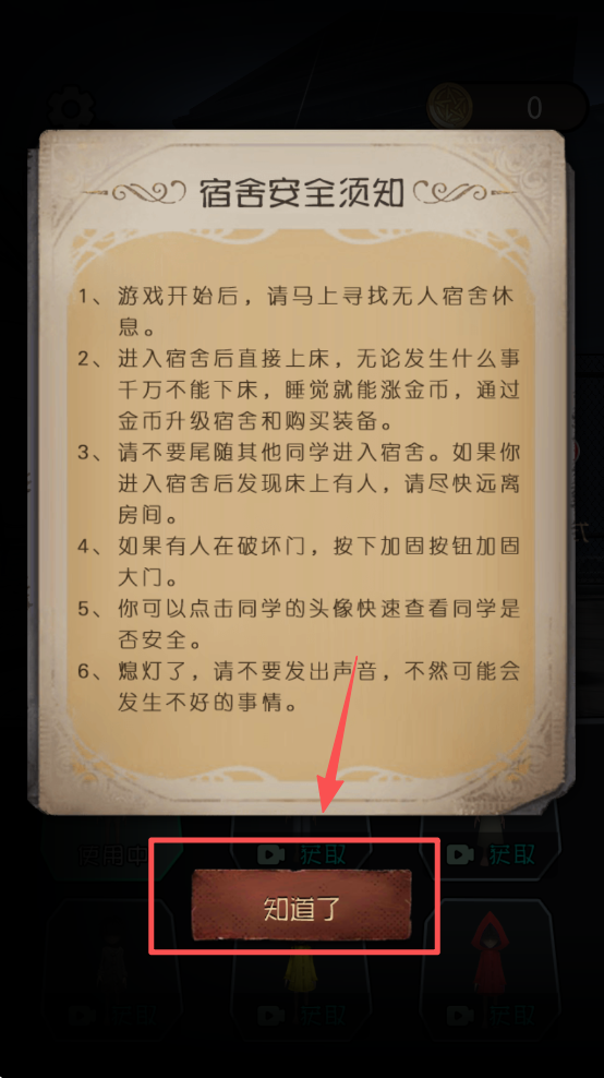 1、首先,阅读并点击“知道了”按钮,了解游戏规则和安全须知。