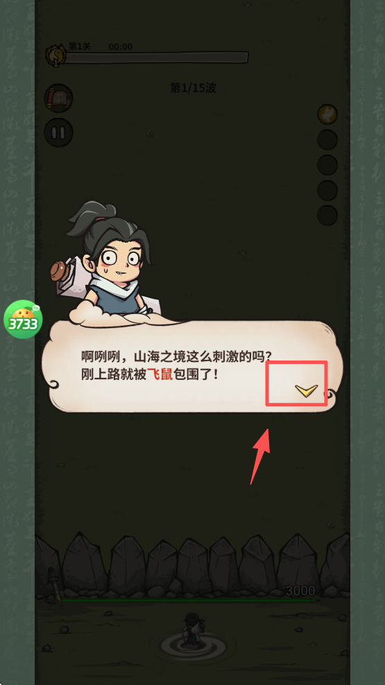 2、接着,在游戏教程中点击对话框右下角的勾选按钮,跳过对话,继续游戏。
