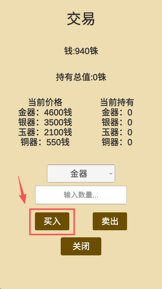 4、在交易界面,选择“买入”按钮,购买所需的装备或物品,增强角色能力。