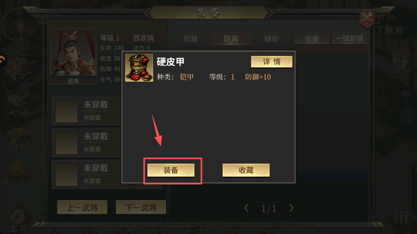 4、点击“装备”按钮,将选中的物品装备到角色身上,提升角色属性。