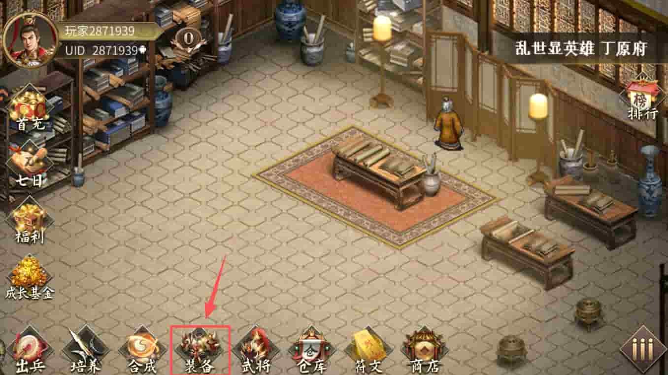 2、在主界面点击“装备”按钮,进入装备管理界面。