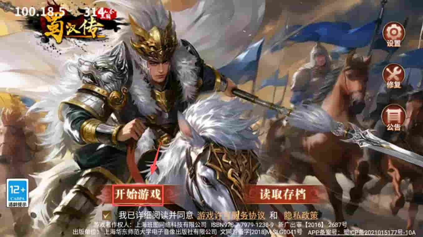 1、点击“开始游戏”按钮,进入游戏并同意相关协议,开始你的三国之旅。