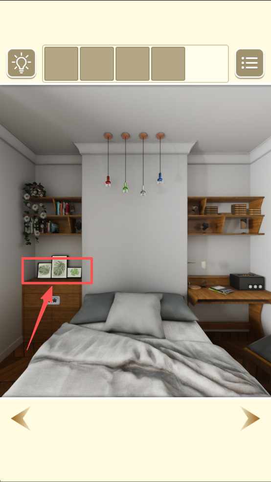 2、在卧室场景中,点击床头柜上的画框。这是寻找线索的关键步骤,点击后可能会触发新的事件。