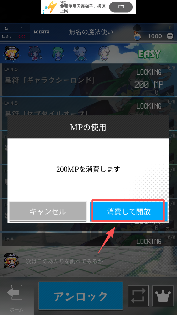 3、选择星符并消耗MP进行解锁。在星符列表中选择想要的星符,点击“消費して開放”进行解锁。