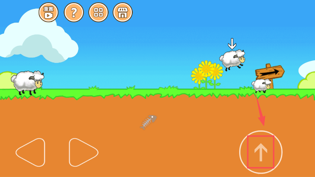 4、继续观察并按照指示点击,引导羊群越到障碍,进行跳跃,完成关卡目标。