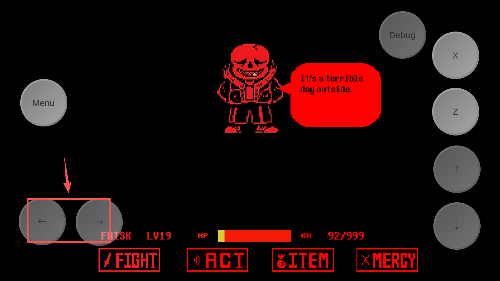2、熟悉角色和操作。使用箭头键或摇杆移动角色,按“Debug”、“X”、“Z”等按钮进行操作。