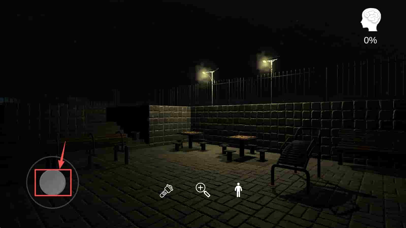 2、使用左下角虚拟摇杆控制角色移动,探索周围环境。