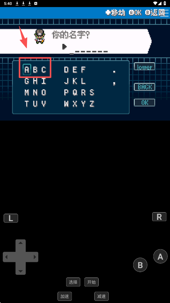 2、在角色命名界面,选择字母输入你的名字,然后点击“OK”确认。